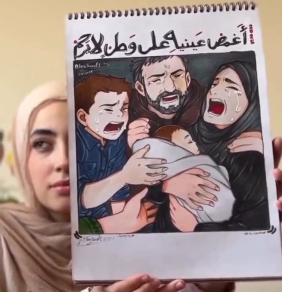 Qu’il s’agisse de porter de l’eau ou d’attendre dans les files d’attente d’aide humanitaire, elle transforme les difficultés quotidiennes en créations puissantes, envoyant un message audacieux au monde : malgré le siège et la dévastation, les Palestiniens persistent, et leurs voix ne peuvent être effacées.
