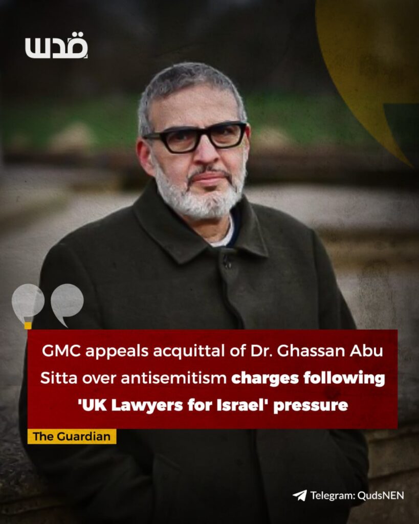 L’affaire a débuté suite à une plainte déposée par l’association UK Lawyers for Israel (UKLFI). Le Dr Ghassan Abu Sitta a qualifié cette manœuvre de tentative d’obtenir un résultat « politiquement acceptable », soulignant l’influence des pressions extérieures sur les décisions des instances de régulation professionnelle.