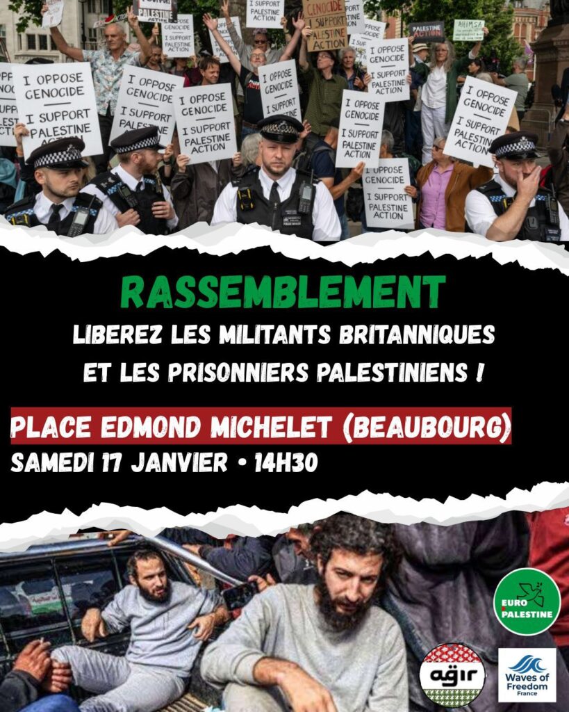RASSEMBLEMENT DE SOUTIEN AUX MILITANTS BRITANNIQUES ET À TOUS LES PALESTINIENS EMPRISONNÉS