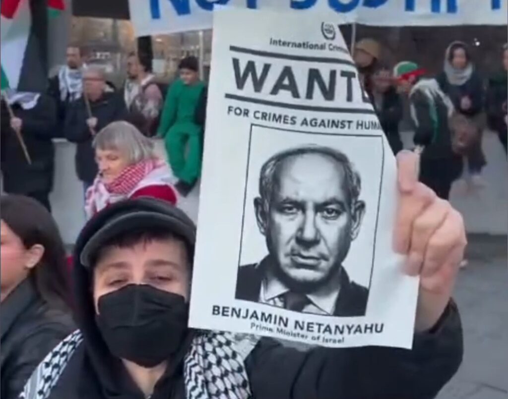 Rassemblement devant le ministère fédéral de l’Intérieur à Berlin, contre une éventuelle visite du criminel de guerre Netanyahou.