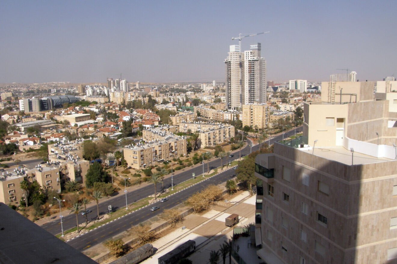 Vue aérienne de Beersheva en 2014. Photo de Moshe David Pikiwiki Israël via Wikimedia Commons.