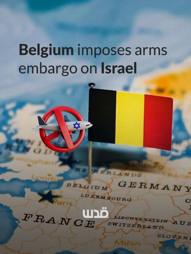 La Belgique a imposé un embargo sur le transfert d’armes et de matériel militaire vers Israël via son espace aérien et ses aéroports, afin de prévenir toute contribution au conflit en cours au Moyen-Orient et de faire respecter le droit international.