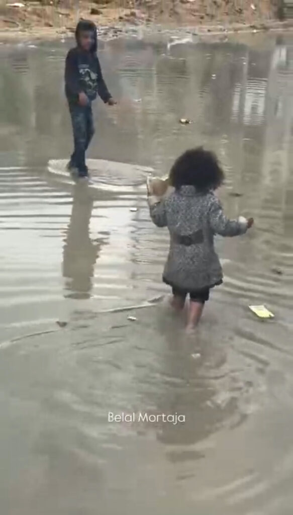 Exemple d’un bâtiment qui s’est effondré pendant la tempête à Gaza après que sa structure a été gravement affaiblie par la destruction continue des infrastructures civiles par Israël.