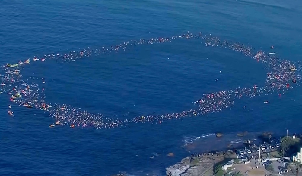 Sur les images partagées par la version australienne du quotidien britannique The Guardian, on peut voir des centaines de surfeurs avec leurs planches multicolores prendre la mer pour rendre hommage, vendredi 19 décembre, aux victimes. Le lendemain ce sont les maîtres nageurs, vêtus de leur tenue jaune vif, de cette plage réputée de Sydney qui ont observé trois minutes de silence.