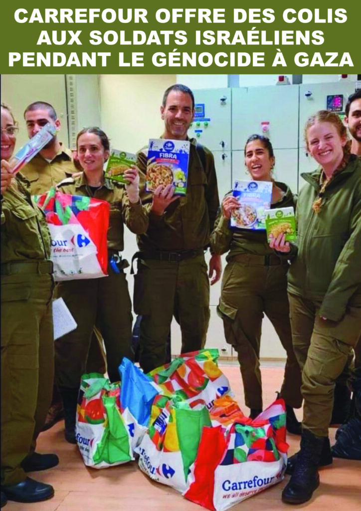 Non, la distribution de colis gratuits aux soldats israéliens n’était pas une « malheureuse initiative » comme avaient tenté de le faire croire les dirigeants de Carrefour lors du lancement du génocide du peuple palestinien à Gaza en 2023.