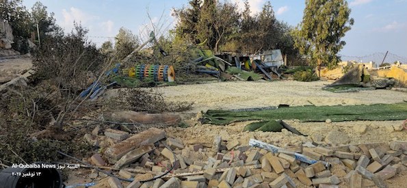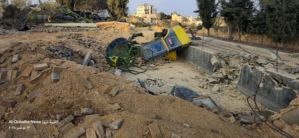 L’armée a détruit une aire de jeux dans le quartier de Jabal al-Sheikh, dans la ville d’al-Qubeiba, au nord-ouest de Jérusalem-Est.