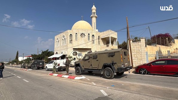 Quelques heures plus tard, l’armée qui n’était pas intervenue pendant l’attaque de la mosquée Al Hajj Hamida par les colons, est arrivée pour contrôler et intimider la population de la vile