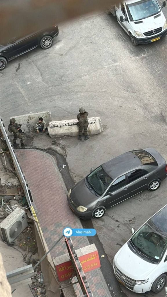 L’armée israélienne détient un garçon et l’utilisent comme bouclier humain lors d’un raid contre le camp de réfugiés de Qalandia, au nord de Jérusalem-Est occupée.