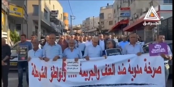 Des centaines de personnes sont descendues dans les rues d’Arraba al-Battuf, en Israël, pour réclamer justice et dénoncer la complicité de la police israélienne dans la vague croissante de violence et de criminalité.