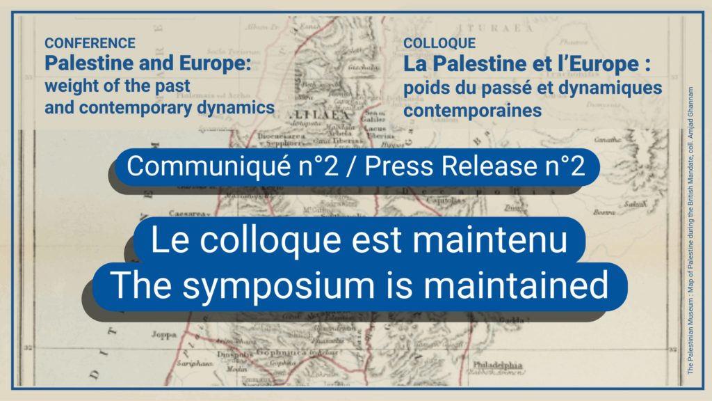 « Communiqué de presse : Notre colloque se tiendra, comme prévu, les 13 et 14 novembre prochains.