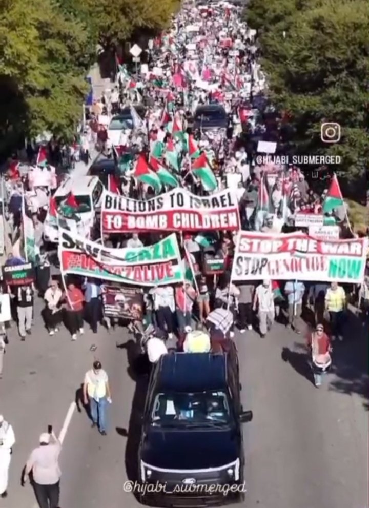 Des foules massives ont défilé samedi à Dallas, aux États-Unis, pour manifester leur soutien au peuple palestinien et condamner les atrocités commises par Israël à Gaza, avec l’argent américain.