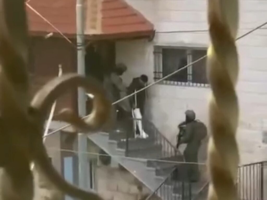 Regardez comment les soldats israéliens, lors de l’un de leurs nombreux raids en Cisjordanie occupée, se mettent à six pour arrêter un jeune Palestinien blessé dans la ville de Tuqu’, au sud-est de Bethléem.