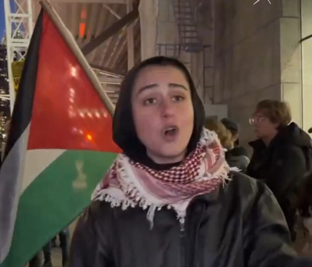 Des étudiants du Mouvement de la jeunesse palestinienne (PYM) à New York manifestent pour protester contre la résolution du Conseil de sécurité de l’ONU plaçant la bande de Gaza sous la tutelle de Donald Trump.