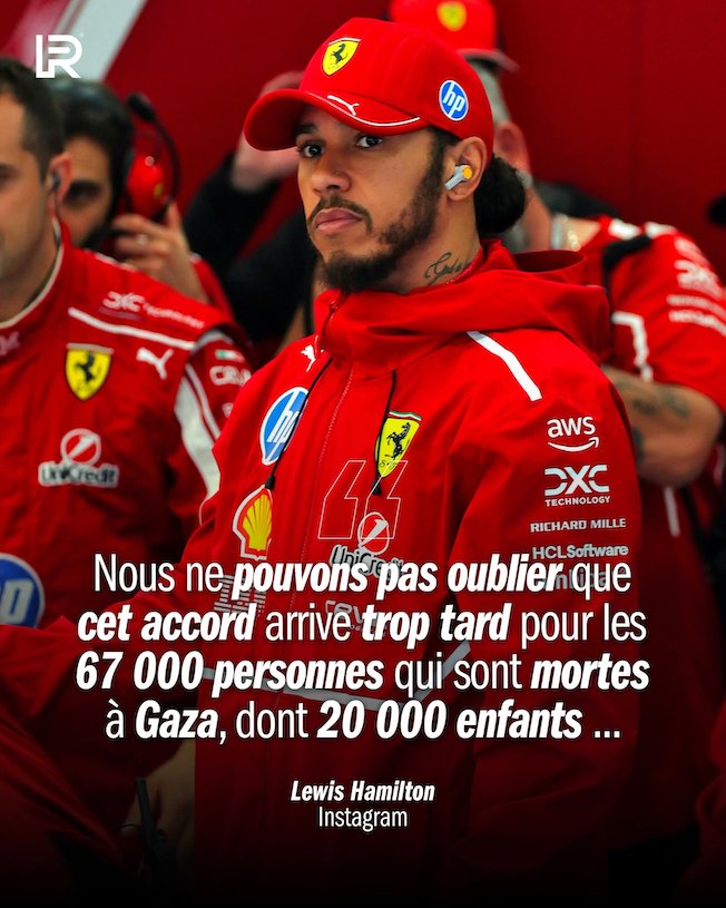 Lewis Hamilton, pilote automobile britannique, septuple champion du monde de Formule 1, s’est exprimé sur la situation à Gaza à la suite de l’annonce d’un cessez-le-feu.