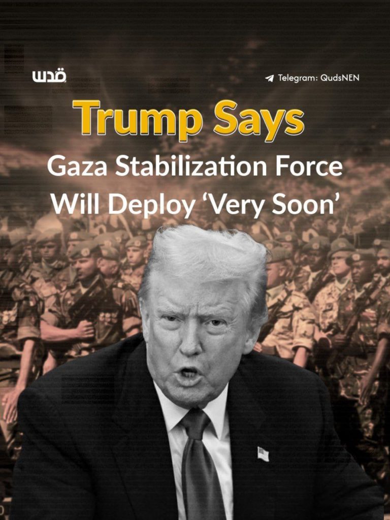 Le président américain Donald Trump vient de déclarer que la Force internationale de stabilisation pour Gaza serait déployée sur le terrain « très prochainement ».