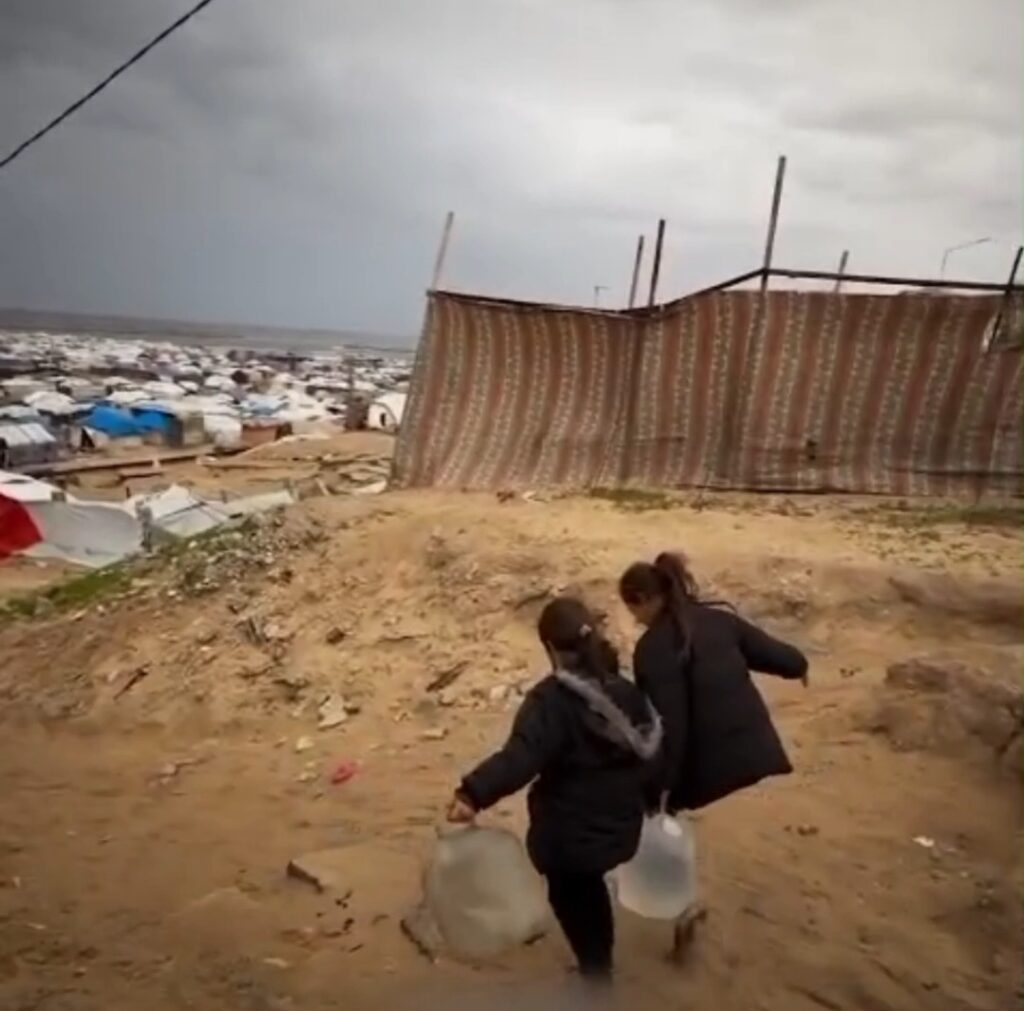 Deux enfants marchent de longues distances pour aller chercher de l’eau, l’un d’eux étant blessé, alors qu’ils soutiennent leur famille lors d’une violente tempête hivernale.