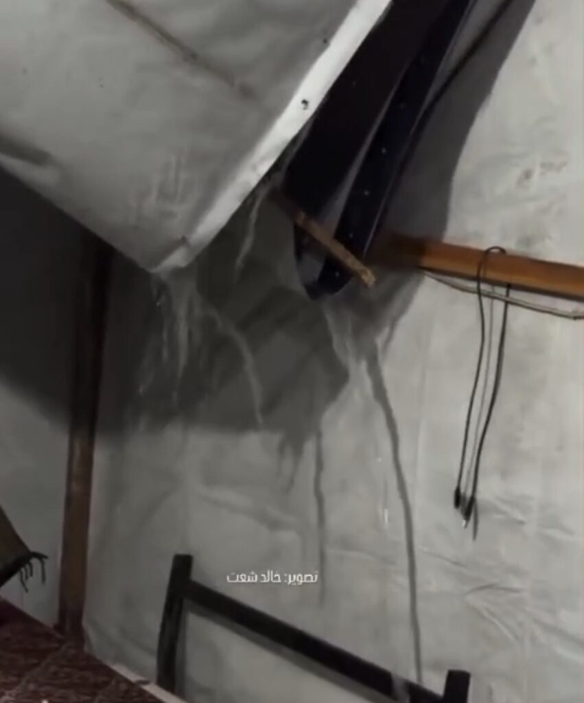 Le journaliste palestinien Khaled Shaat documente l’inondation de sa tente de fortune à Gaza par des pluies torrentielles.