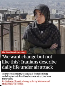 Le récent reportage visuel du Guardian sur l’Iran offre un aperçu intime de la vie civile sous les bombardements. Les images sont saisissantes. Le cadrage est humain. Le ton est empreint d’empathie.