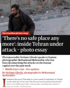 Le récent reportage visuel du Guardian sur l’Iran offre un aperçu intime de la vie civile sous les bombardements. Les images sont saisissantes. Le cadrage est humain. Le ton est empreint d’empathie.