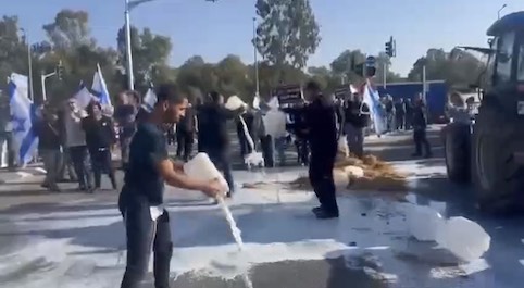 Des agriculteurs et des producteurs laitiers israéliens ont déversé du lait dans les rues pour protester contre le plan de réforme du secteur laitier promu par le ministre israélien des Finances, Bezalel Smotrich.