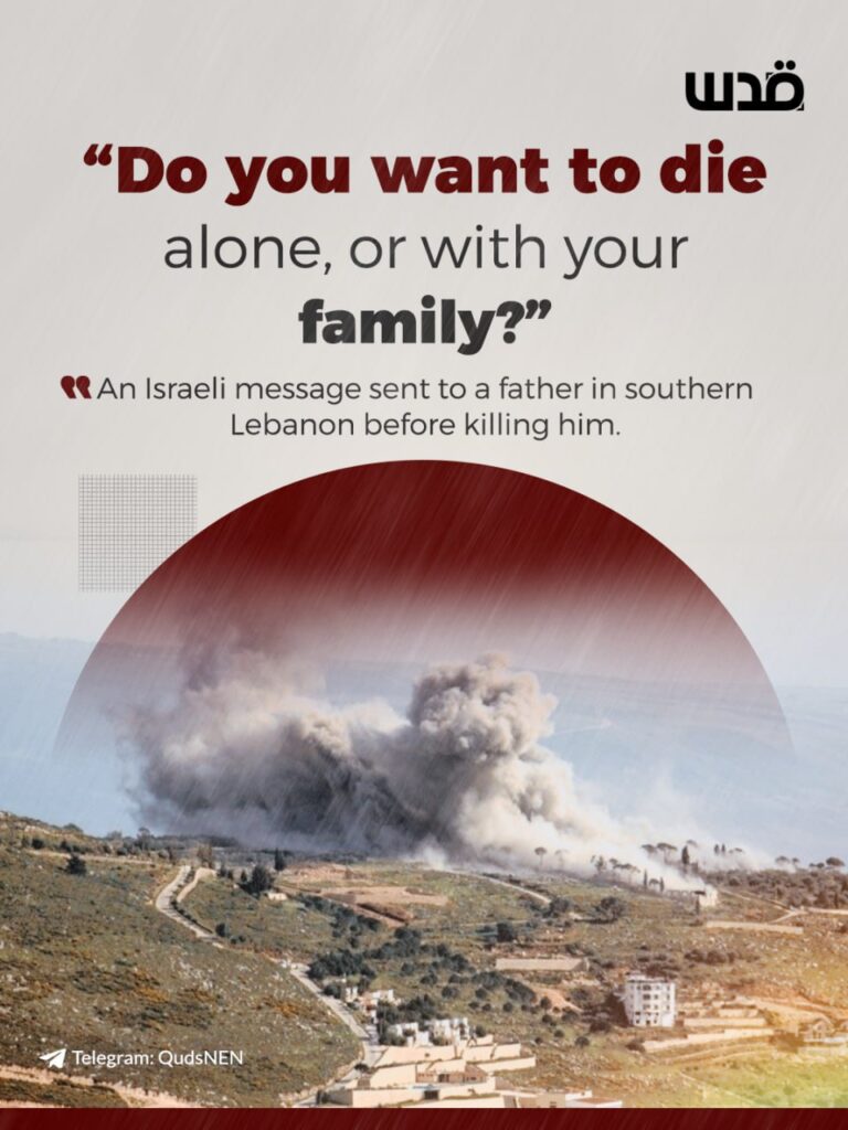 L’armée israélienne a envoyé un message à un père de famille de 62 ans, au sud du Liban : « Voulez-vous mourir seul ou avec votre famille ?»