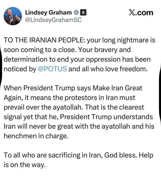 Le sénateur républicain Lindsey Graham, proche allié du président américain Donald Trump, s’est adressé ce soir au peuple iranien dans un message public, alors que les manifestations se poursuivent dans le pays. Il a durci le ton contre le régime des ayatollahs :