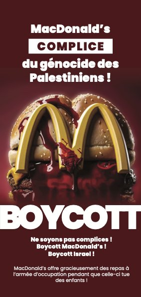 Alors plus que jamais boycott de McDo, CocaCola, Carrefour, TEVA, HP, Reebok et Optical Center !