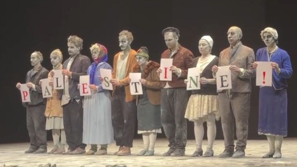 ...LES ANTI Italie : comédiens solidaires de la Palestine Vues: 35 Date: 16 décembre 2025 URL has been copied successfully! URL has been copied successfully! Des comédiens ont affiché leur soutien à la Palestine à l’issue d’une représentation au Théâtre Bellini à Naples, ce dimanche, en affichant « FREE PALESTINE » CAPJPO-Europalestine Article en PDF La source de cet article se trouve sur ce site Article précédentQui peut imaginer ce qu’endurent les Gazaouis privés d’abris par Israël ?Article suivantMerci « Avatar : de cendres et de sang », est un très très grand spectacle LAISSER UN COMMENTAIRE Annuler la réponse Commenter : S'il vous plaît entrez votre commentaire! Nom : S'il vous plaît entrez votre nom ici Email : Vous avez entré une adresse email incorrecte! Veuillez entrer votre adresse email ici Site : Enregistrer mon nom, email et site web dans ce navigateur pour la prochaine fois que je commenterai. Δ PARTAGER: FacebookTwitterPinterestWhatsApp