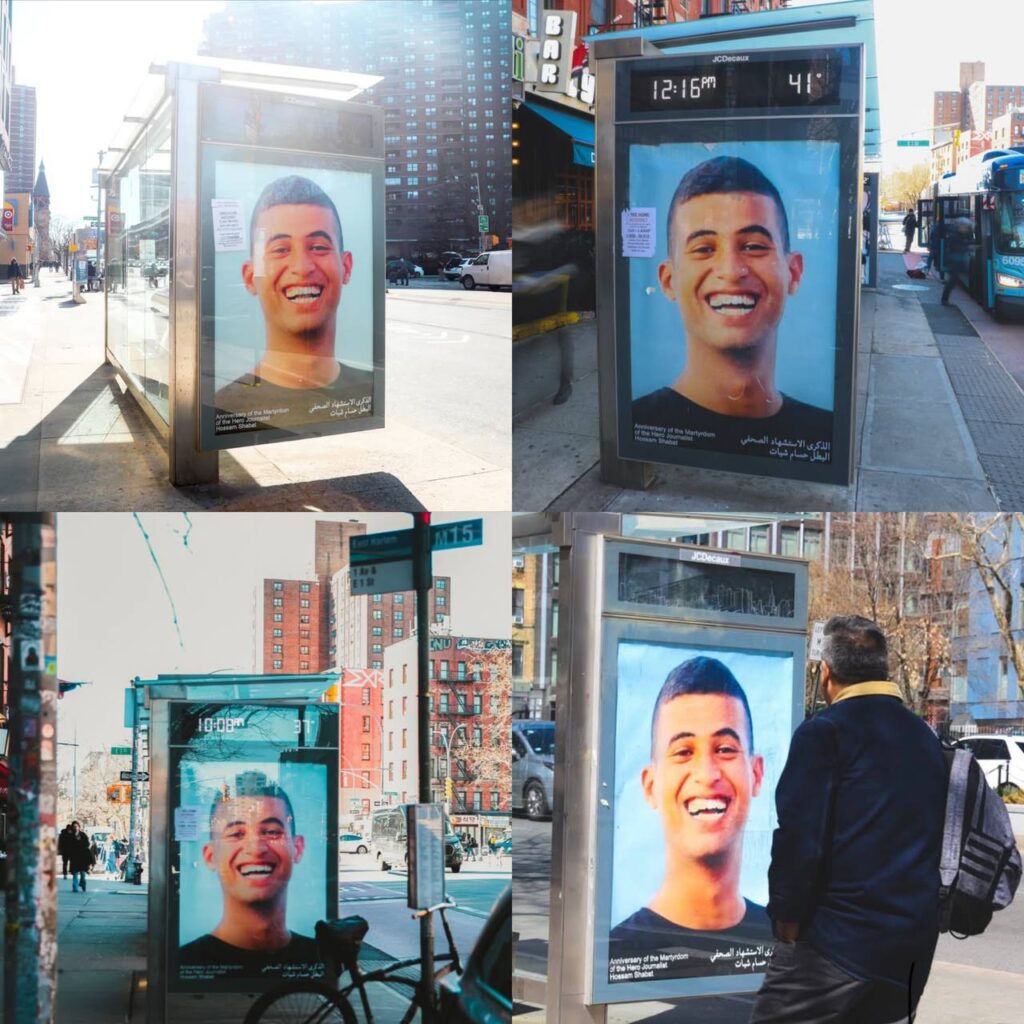 À l’occasion de l’ »anniversaire » de son assassinat par Israël dans le nord de Gaza, des affiches rendant hommage au journaliste palestinien Hossam Shabat, âgé de 23 ans, ont été placardées dans les rues de New York.