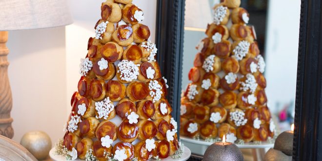 La pièce montée évoque le mont Sinaï fleuri, regorgeant de lait et de miel. Elle est ornée de fleurs en pâte d’amande, de choux fourrés à la crème et enrobés de caramel doré, et d’une élégante plaque en miel représentant les tables de la loi. Cette magnifique création culinaire en forme de montagne du Har Sinaï, où D-ieu nous a donné la Torah, ne se contente pas d’être un délice pour les yeux et les papilles, elle représente majestueusement la richesse spirituelle et la profondeur des coutumes traditionnelles tunisiennes.