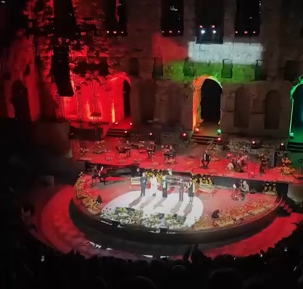 Dimanche soir, le drapeau palestinien a illuminé l’Odéon d’Hérode Atticus à Athènes lors du concert en hommage à Arleta