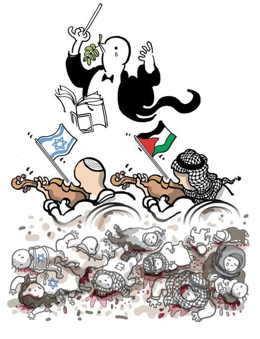 Plantu, figure importante du dessin de presse en France et cofondateur du réseau Cartooning for Peace, s’est fait connaître pour ses illustrations sur des sujets internationaux, y compris le Proche-Orient, et pour promouvoir le dialogue par la satire.