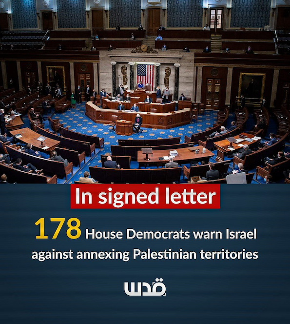 Il sait que 178 députés démocrates, dont les chefs de parti Hakeem Jeffries, Katherine Clark et Pete Aguilar, ont signé une lettre pour s’opposer à l’annexion de la Cisjordanie, avertissant que celle-ci violerait le droit international et des décennies de politique américaine.