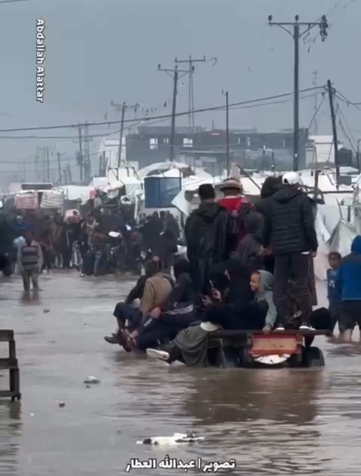 Ces scènes témoignent de l’ampleur des souffrances endurées par les Gazaouis déplacés vivant sous des tentes, alors que la deuxième tempête hivernale de la saison frappe l’enclave ravagée par le génocide, et que les génocidaires refusent de livrer des tentes en bon état et des caravanes.