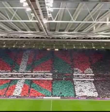 Des dizaines de milliers de supporters ont envahi samedi soir le stade San Mamés, antre de l’Athletic Bilbao, pour manifester leur soutien aux Palestiniens, après deux années de génocide perpétré par Israël dans la bande de Gaza assiégée.