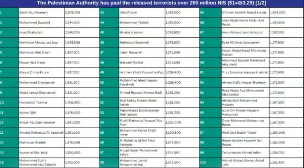Les 160 terroristes condamnés à perpétuité sont devenus millionnaires – en prison en Israël.