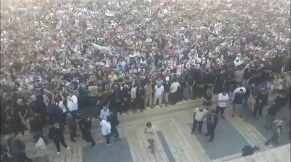« Lancez l’appel, mon compatriote, ébranlez le trône de l’ennemi sioniste !». Le peuple de Hama, en Syrie, scande des slogans contre l’occupation israélienne en attendant l’apparition du président Ahmad Al-Sharaa.