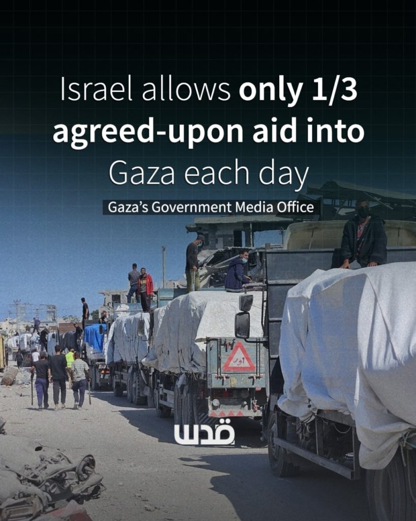 Et Israël continue de bloquer l’entrée de plus de 350 produits alimentaires essentiels, dont les œufs, la viande, le poisson, les produits laitiers et les légumes, tout en autorisant les sodas, le chocolat et les chips…