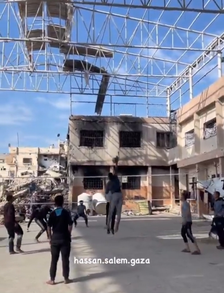 Dans le camp de réfugiés de Jabalia, au nord de Gaza, malgré le bourdonnement incessant des drones israéliens, un groupe de jeunes Palestiniens jouent au volley-ball parmi les ruines, témoignant d’une incroyable résilience.