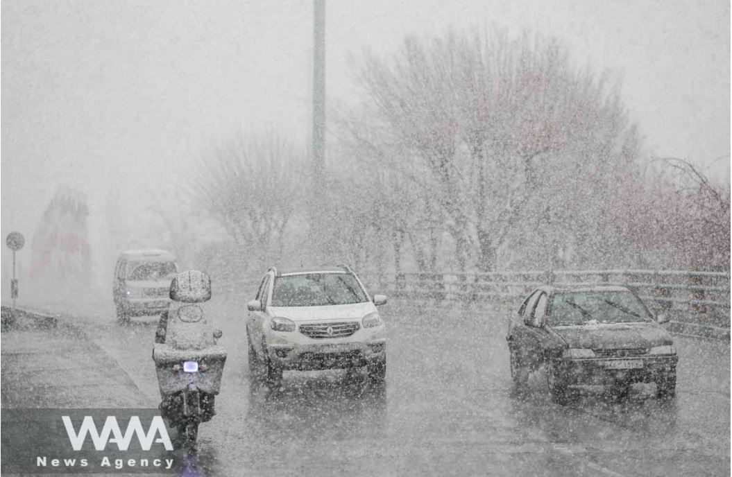 Des voitures circulent dans une rue de Téhéran, en Iran, sous la neige, le 9 février 2023. Majid Asgaripour/WANA (Agence de presse Asie occidentale)