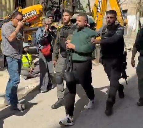 Les forces d’occupation brutalisent et arrêtent une famille de Palestiniens lors d’une campagne de démolition dans le quartier de Silwan, à Jérusalem occupée.