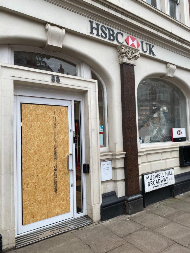 Des manifestants du groupe « People Against Genocide » ont pris pour cible une agence HSBC à Muswell Hill, à Londres, l’obligeant à fermer temporairement.