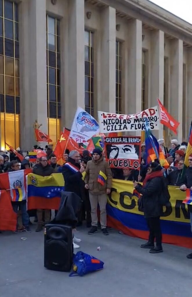 ...LES ANTI Manifestation à Paris contre l’agression du Venezuela par les USA Vues: 1 Date: 11 janvier 2026 URL has been copied successfully! URL has been copied successfully! Du monde, samedi au Trocadéro, pour protester contre l’agression de Trump, le fasciste, contre le Venezuela ! CAPJPO-Europalestine Article en PDF La source de cet article se trouve sur ce site Article précédentLE 7 OCTOBRE, POINT DE BASCULE DE L’HISTOIRE: L’Edito de Maître Nili Naouri.Article suivantEN DIRECT Manifestations en Iran : Le peuple « ne devrait pas permettre aux émeutiers de déstabiliser la société », fustige le président… LAISSER UN COMMENTAIRE Annuler la réponse Commenter : S'il vous plaît entrez votre commentaire! Nom : S'il vous plaît entrez votre nom ici Email : Vous avez entré une adresse email incorrecte! Veuillez entrer votre adresse email ici Site : Enregistrer mon nom, email et site web dans ce navigateur pour la prochaine fois que je commenterai. Δ PARTAGER: