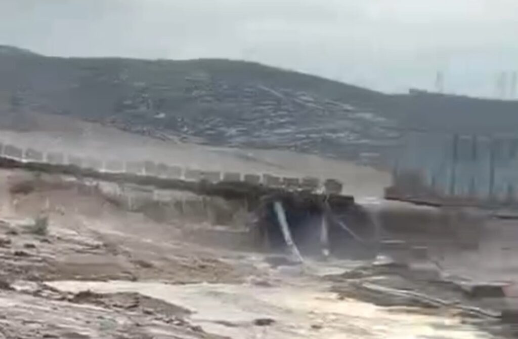 Une section du mur de l’apartheid est effondrée près du village d’Al-Burj, à l’ouest de Dura, dans l’ouest d’Hébron, à cause de pluies torrentielles.