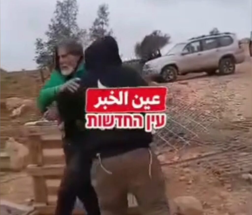 Un colon en train d’attaquer jeudi un militant des droits de l’homme hier dans le village de Douma, près de Naplouse, en Cisjordanie occupée.