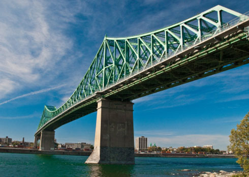 Des prohamas bloquent l’entrée du pont Jacques-Cartier à Montréal.