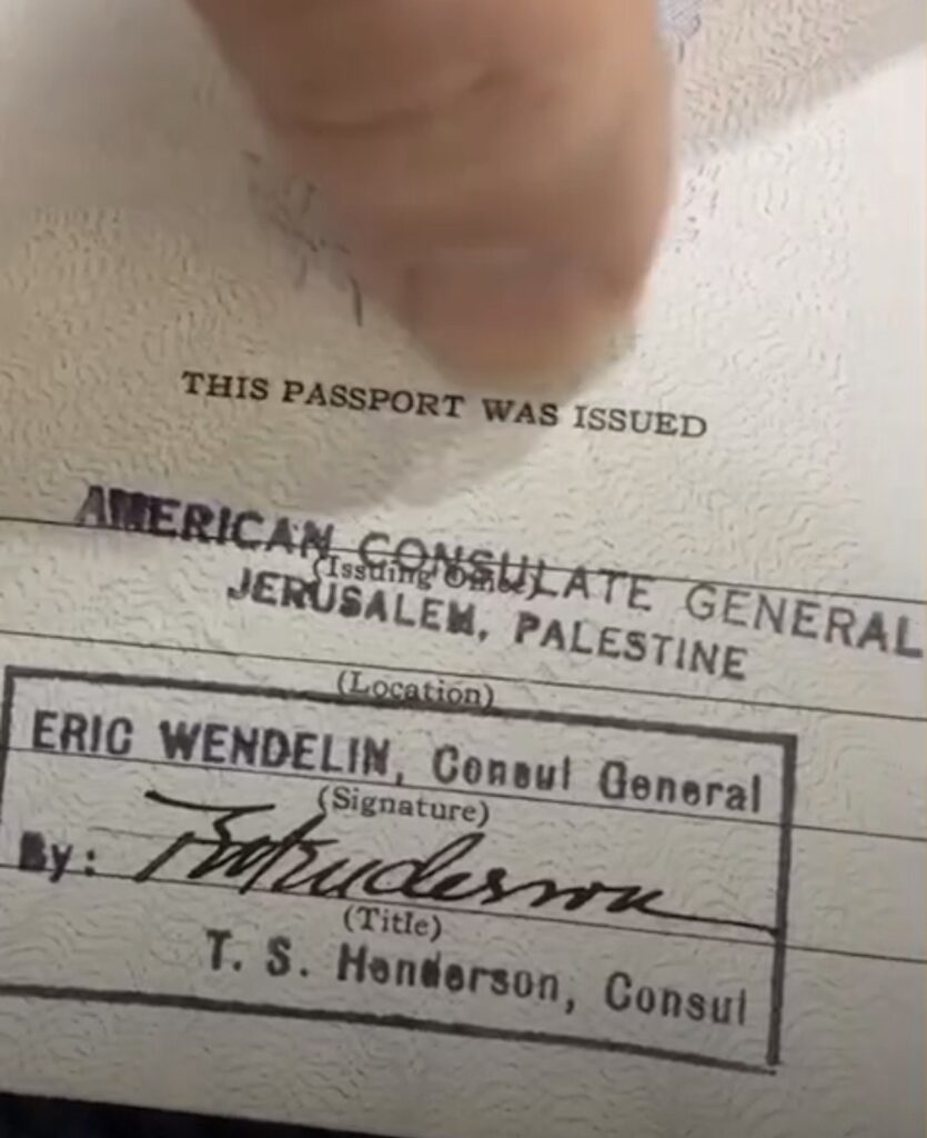 Un passeport américain délivré en 1932 par le consulat américain à Jérusalem, porte la mention « Jérusalem Palestine », ville et pays d’émission. C’était avant la création d’Israël.