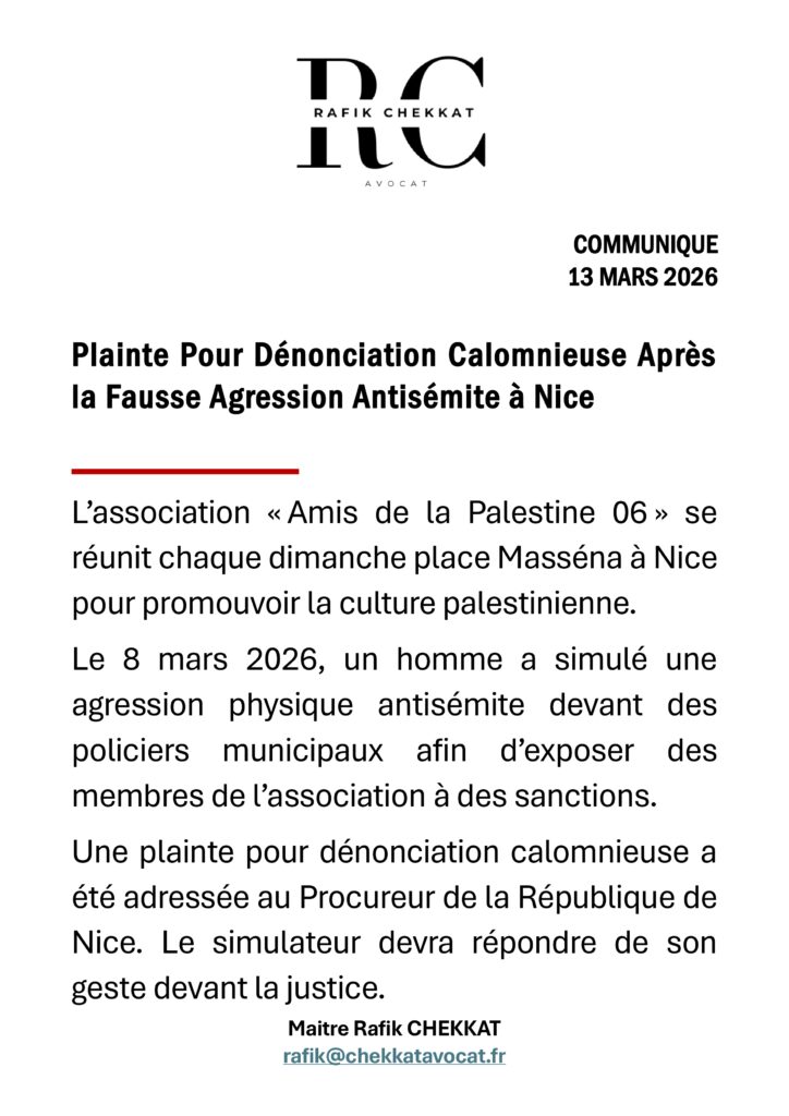Le provocateur qui avait simulé une agression lors d’un rassemblement de soutien au peuple palestinien, devra répondre de son acte devant la justice : une plainte pour dénonciation calomnieuse vient ainsi d’être déposée, annonce l’avocat Rafik Chekkat.
