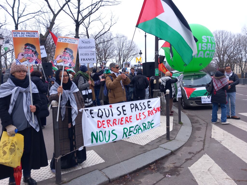 ...LES ANTI Nouveau rassemblement parisien contre la loi Yadan, ce lundi de midi à 22h ! (Photos et vidéo) Vues: 12 Date: 27 janvier 2026 URL has been copied successfully! URL has been copied successfully! VIDEO : CAPJPO-Europalestine Article en PDF La source de cet article se trouve sur ce site Article précédentNi 2ème, ni 1ère phase : il n’y a pas de cessez-le-feu à Gaza !Article suivantBoycott Medjoul ! Pas de Ramadan avec les dattes volées aux Palestiniens ! LAISSER UN COMMENTAIRE Annuler la réponse Commenter : S'il vous plaît entrez votre commentaire! Nom : S'il vous plaît entrez votre nom ici Email : Vous avez entré une adresse email incorrecte! Veuillez entrer votre adresse email ici Site : Enregistrer mon nom, email et site web dans ce navigateur pour la prochaine fois que je commenterai. Δ PARTAGER: FacebookTwitterPinterestWhatsApp