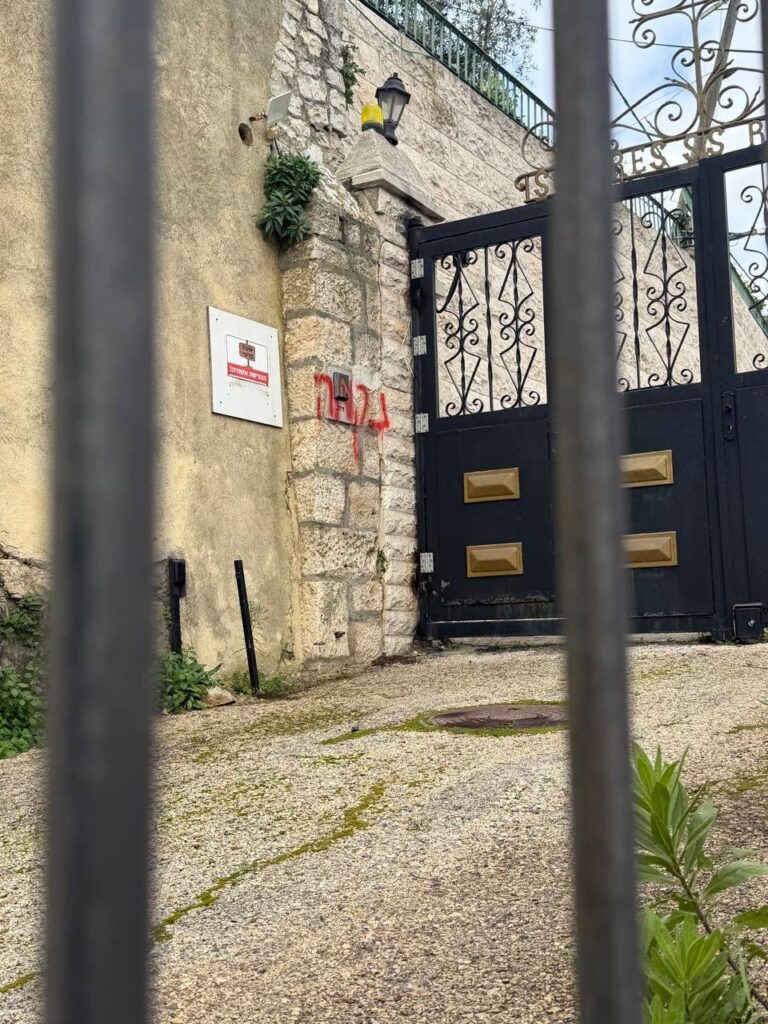 Des milices de colons israéliens ont tagué des slogans sur l’église de la Visitation dans le village palestinien d’Ein Karem, à l’ouest de Jérusalem, profanant ainsi un lieu chrétien sacré et violant son caractère religieux.